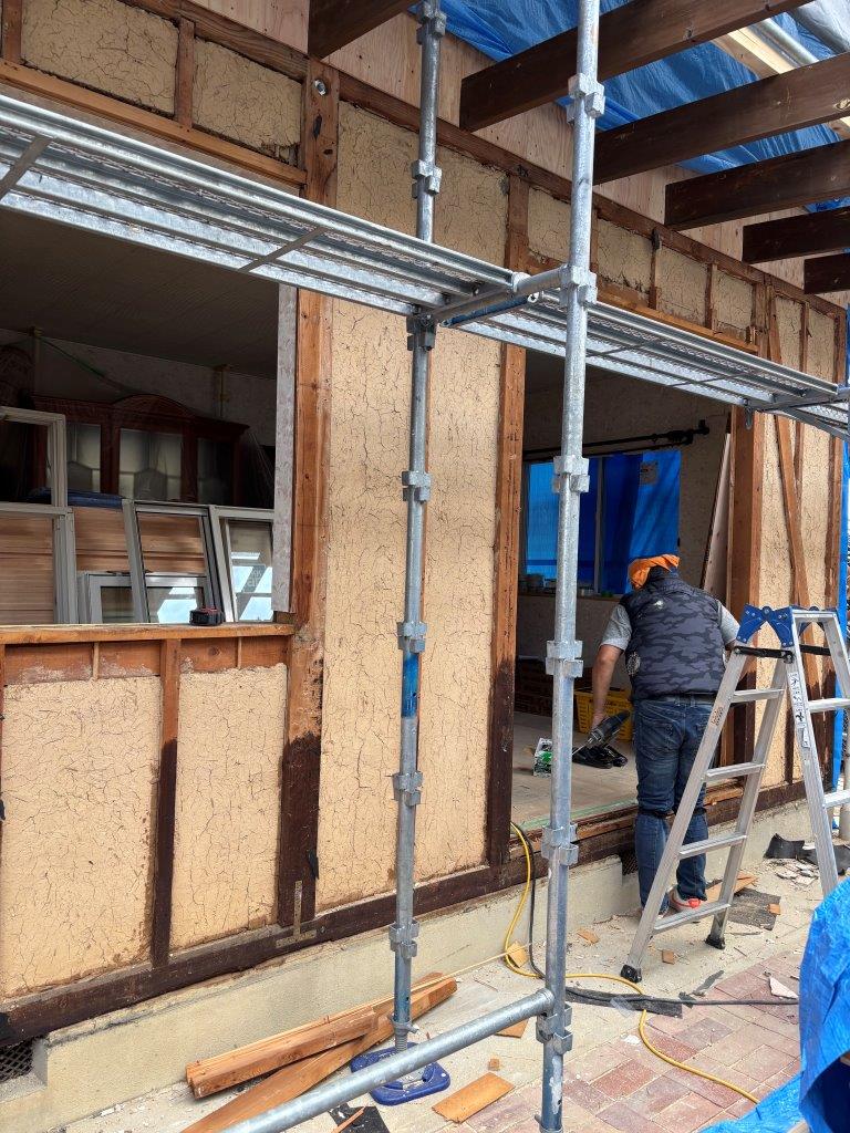 1.2階の外壁をとり、断熱材を入れ、サッシの交換をします。