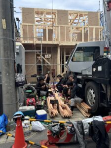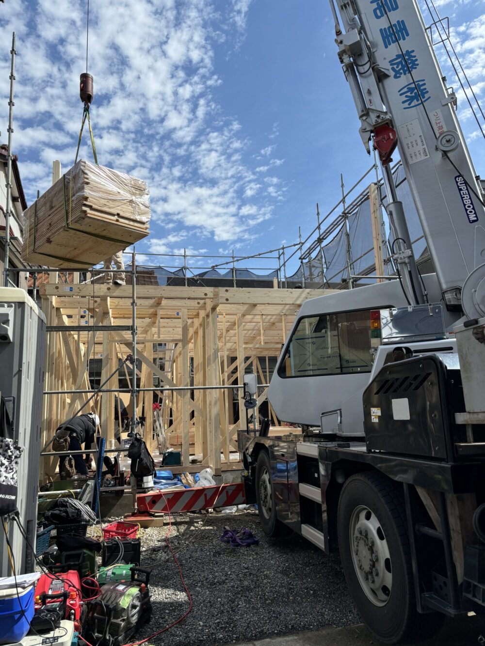 大分前になりますが、K邸の建て方の様子です。 LDKとつながった洋室の三枚引き戸を開けると、さらに大きなLDKとなり、状況によって変化できる間取りになっています。
